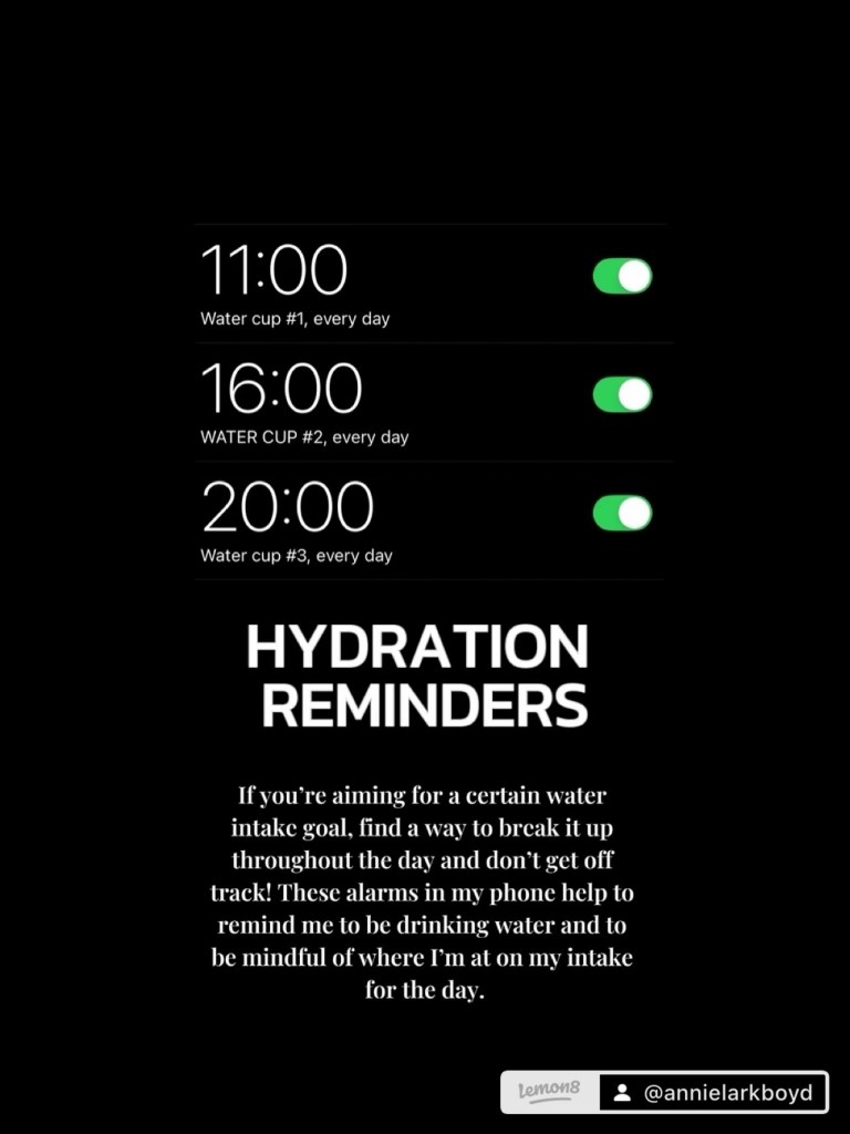Now, I bring my 40-ounce tumbler with me that is full and has a pinch of celtic sea salt in it and aim to refill it at least twice throughout the day. I also set a recurring alarm on my phone to remind me to take a few sips every hour or so—nothing fancy, just a little nudge to keep hydration top of mind.